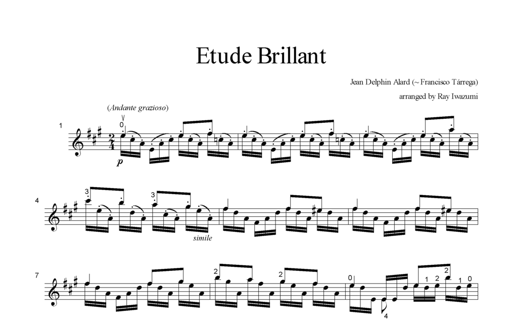 Ray Iwazumi's solo violin arrangement of Francisco Tárrega's famous "Estudio Brillante de Alard"